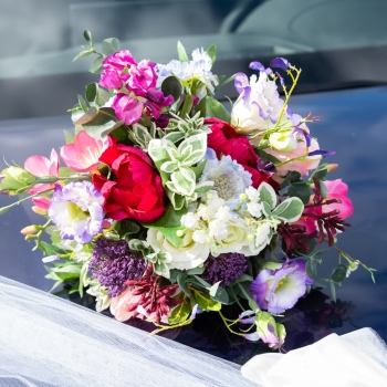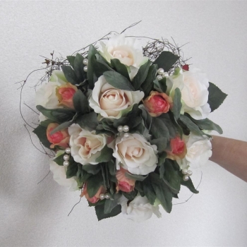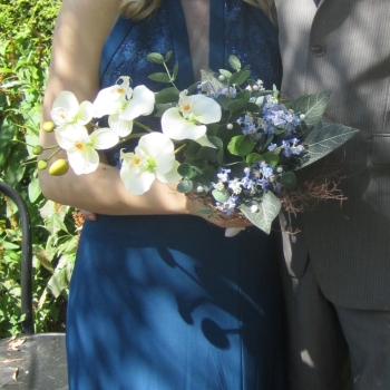 Florazijdebloemen maakt o.a. bruidsboeketten en corsages van zijden bloemen die niet van echt te onderscheiden zijn. Een bruidsboeket gemaakt van zijden bloemen is dan ook een blijvende herinnering aan de mooiste dag van uw leven. (Klik op de foto voor groot.)